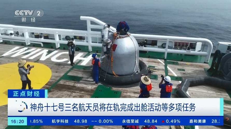 (央视财经《正点财经》)今天(10月26日)11时14分,搭载神舟十七号载人飞船的长征二号F遥十七运载火箭在酒泉卫星发射中心点火发射,约10分钟后,神舟十七号载人飞船与火箭成功分离,进入预定轨道,航天员乘组状态良好,发射取得圆满成功。