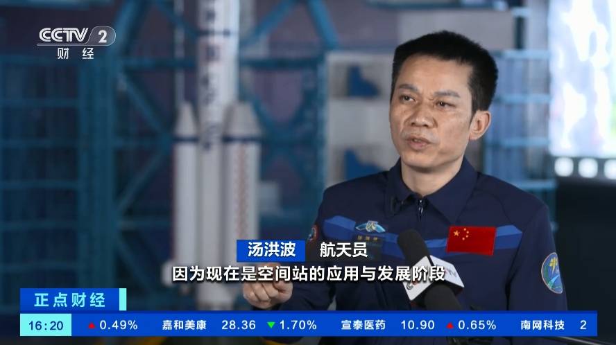 航天员 汤洪波:现在是空间站的应用与发展阶段,会有很多科学实验,这是非常大的一部分。另外是飞行器平台的照料、日常站务维护还有太空出舱。