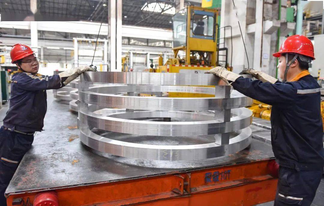 西南铝锻造员工在吊运铝合金环件。西南铝供图