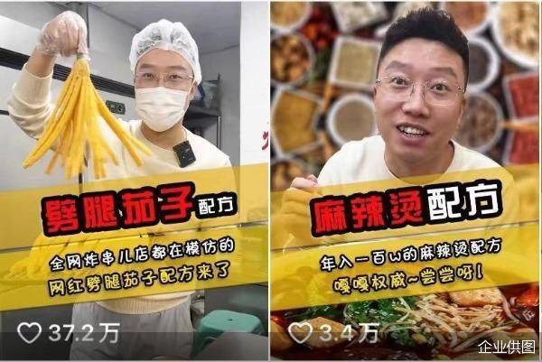 他的第一个点赞过万的视频就是美食配方类的。麻辣烫配方3.4万人点赞、劈腿茄子配方37.2万人点赞、炸鸡排甜辣酱配方9万人点赞,那段时间视频类内容的数据大涨,东哥的账号小范围火了。后期东哥又分享过鸡架、凉皮、捞汁小海鲜等制作、测评类的视频,以至于不少亲友、邻居都刷到过他的美食短视频。“我照着你的配方做过菜呢”,类似这样的寒暄方式东哥遇到过不少,这也让他想到一个问题。