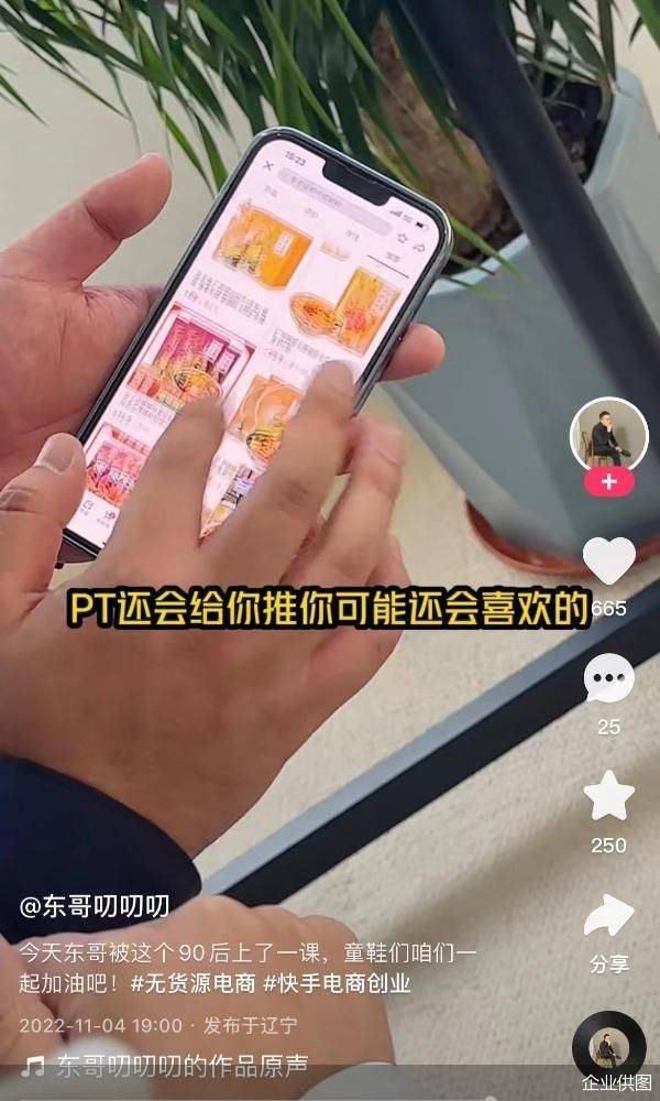 从那时起,东哥对小成本且不用囤货的轻模式格外关注,目前他合伙的有货源无库存电商项目就是轻模式。“简单说就是在短视频直播平台上开一个网店,自己选品,供应链负责发货,不需要直播也不需要发视频,有订单就能挣钱”,用从业者的话说,“重要的是选品,要踩上短视频直播电商的红利”。