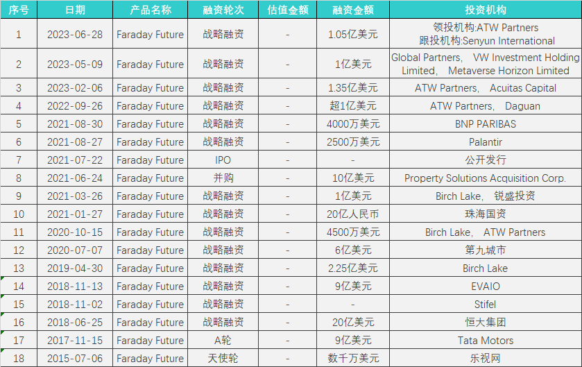 在还没有产生营收的阶段,FF仅靠一番构想便获得了不少融资。
