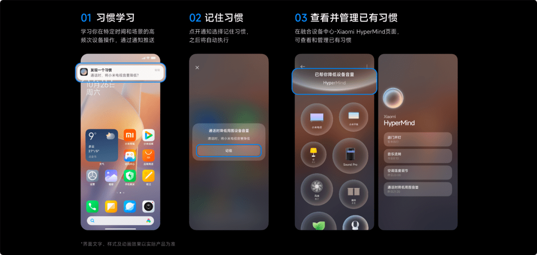 比如,每天回家你都会开灯,小米 HyperMind 学到这个习惯后,就会在你回家时自动开灯。使用的设备越多,小米 HyperMind 学到的习惯就越多,常用的设备无需操作就能按照你的习惯运行。
