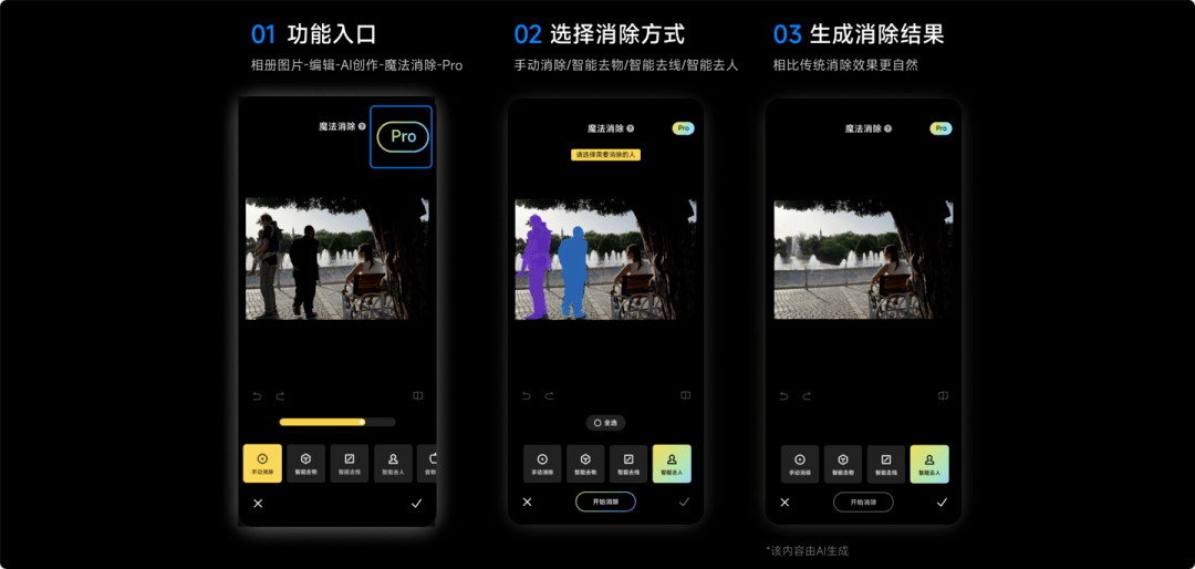 AI 魔法消除 Pro:魔法消除升级大模型,去掉图片上不想出现的东西。
