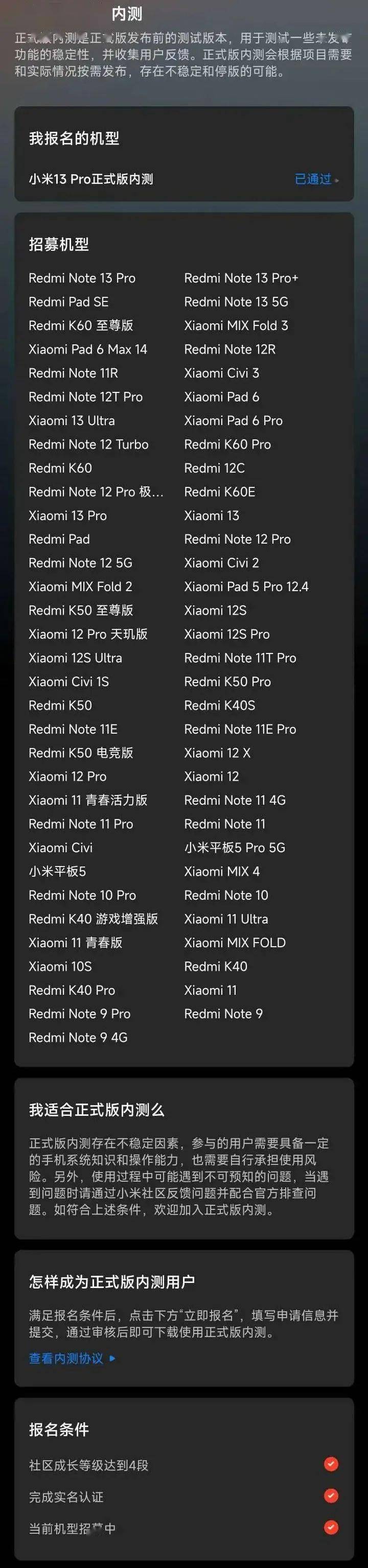 除此之外,以下机型通过申请也会获得正式版内测的资格: