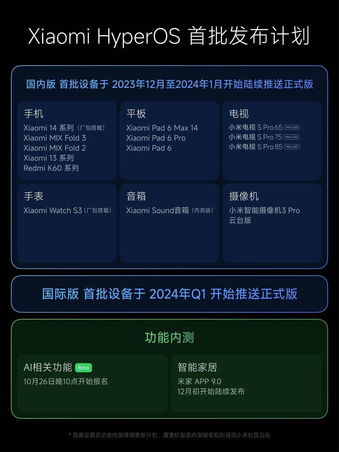而正式版本小米澎湃 OS 国内机型最早今年 12 月开始推送,国际版机型将于 2024 年第一季度推送正式版。