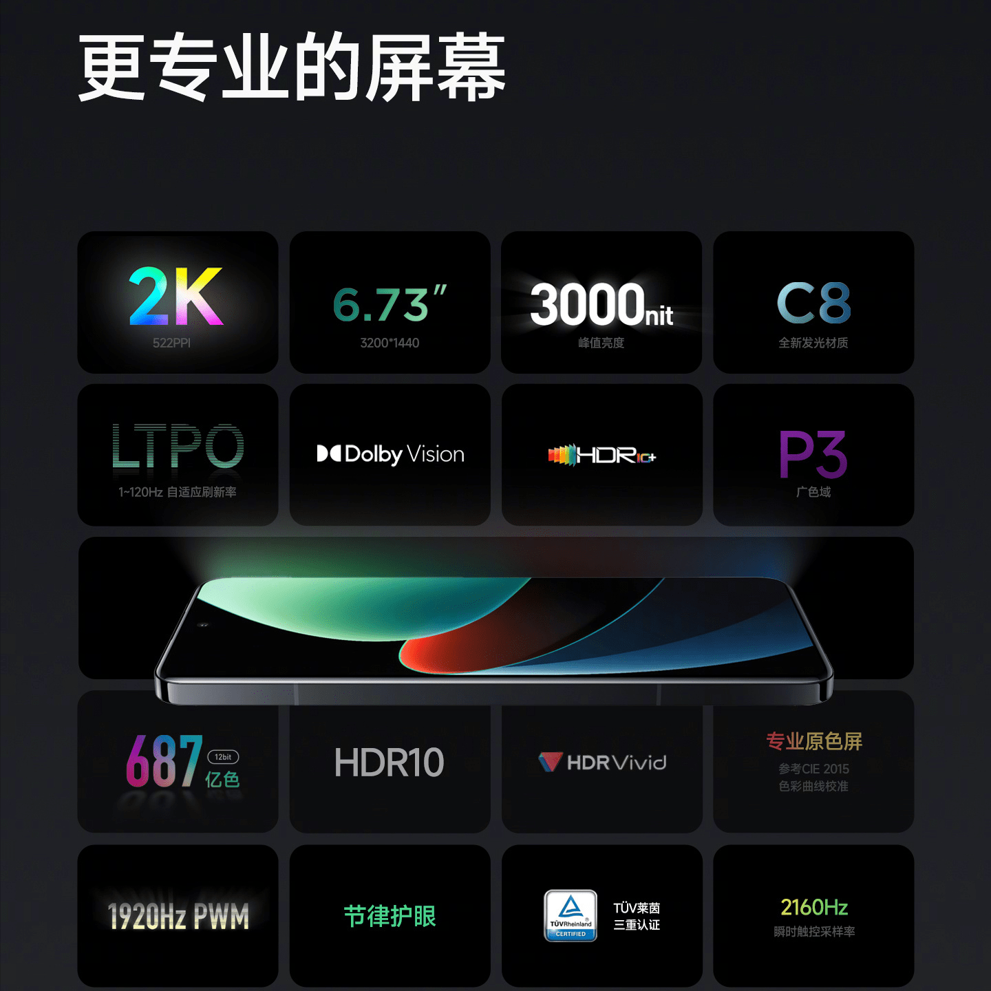 屏幕供应商来自华星光电,6.7英寸拥有2K分辨率,屏幕峰值亮度达到3000nit,还支持1~120Hz自适应刷新率、DC调光、1920Hz高频pwm调光多种护眼模式。无论从哪个角度看,这块屏幕都是行业最佳水准,小米又一次推动了国产供应链的崛起,预估这块屏幕的成本价格应该不便宜。