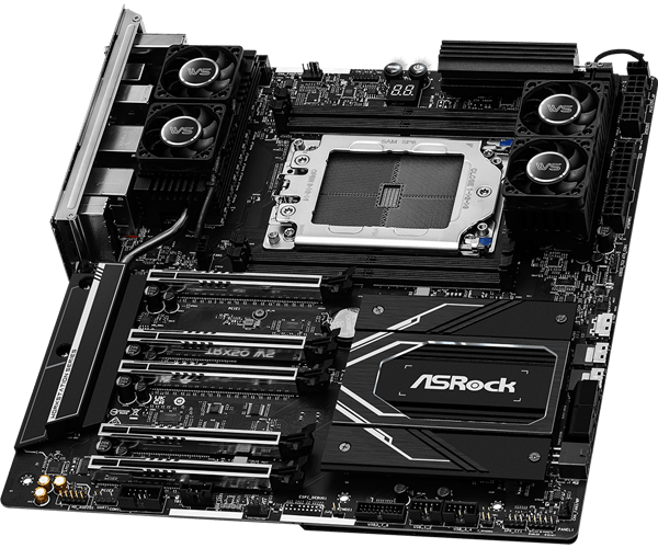 RX90 WS EVO的详细规格暂未公布,可以看到更夸张的五个主动风扇、八条DDR5内存插槽(最大容量2TB)、七条PCIe x16扩展插槽等等。