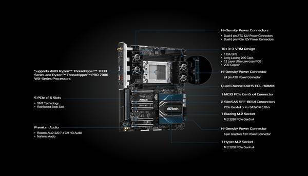 华擎就发布两款强大的主板,其中RX90 WS EVO面向工作站的撕裂者7000WX PRO系列,TRX50 WS面向发烧级桌面平台的撕裂者7000系列。