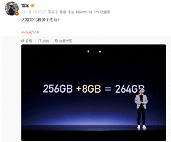小米14手机256G变264G 雷军已申请专利 这是创新:供应链直言都能做 不神秘