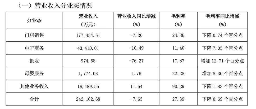 值得一提的是,受出生率下滑影响,奶粉行业需求不及预期,“价格战”现象不断,且惠氏等奶粉品牌在电商平台的频繁直播、优惠活动也对爱婴室门店产品销售造成一定影响。今年前三季度,奶粉产品营收同比下滑近12%,毛利率也下滑1个百分点。