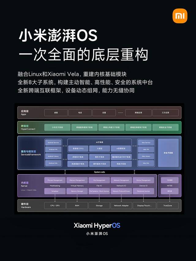对于小米澎湃OS的适配,亓纪的想法是这样的:实话实说,发布会上关于系统的讲解和PPT有点混乱,特别是关于适配机型的公布,这也是亓纪没有第一时间分享的主要原因,也是亓纪推测其提前发布的原因之一。通过一个小细节,我们就能直观的感受到小米澎湃OS的庞大和复杂,那就是打造面向百亿设备的互联基座。