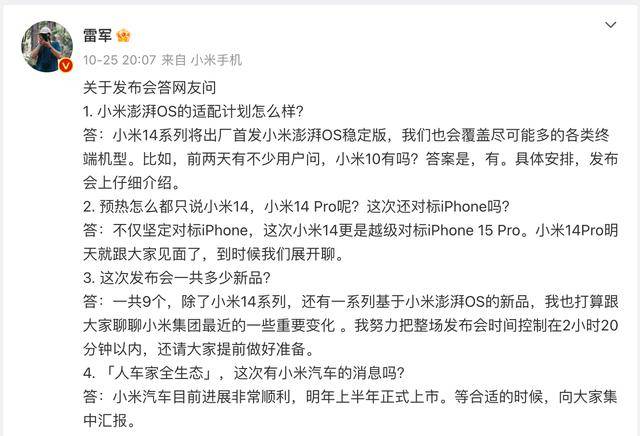 从目前的情况来看,小米澎湃OS有可能是提前发布的,原因和友商关系不大,真正的目的是明年发布的小米汽车。在介绍新系统的时候,官方给出的定义是:以人为中心,构建人车家全生态系统,可见小米汽车的重要意义。或许就是因为提前发布,再加上超大规模的底层重构和统一互联协议,所以机型的适配和升级相对缓慢。