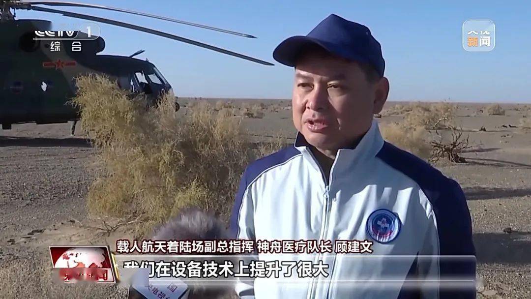 载人航天着陆场副总指挥 神舟医疗队长 顾建文:我们在设备技术上提升了很大,组织了很多相关的、新的一些检查,更新了更年轻的队员,学历高、能力强。能够以很高的积极性来完成这个任务。