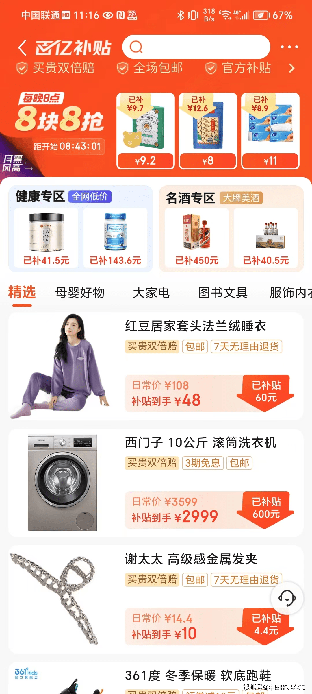 电商平台的百亿补贴板块主推的产品大部分不同品。