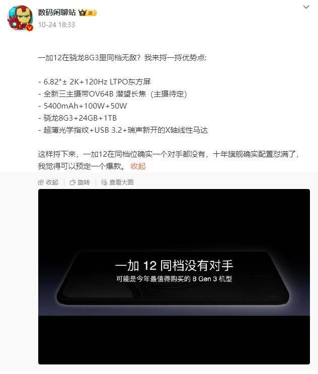 一加今年的产品势头非常猛,上半年一加Ace 2和一加Ace 2V,下半年的一加Ace 2 Pro都是获得了不错的市场反馈,品牌影响力也是得到了全面升级。而作为一加最新的数字旗舰,一加12目前的产品亮点不仅仅是骁龙8 Gen 3处理器,还会直接跳过8GB内存,选择12GB内存起步,最高内存容量更是会上探到24GB,届时一加12的整体硬件性能将会十分出色,多任务处理以及后台保活方面都会迎来进一步的提升。