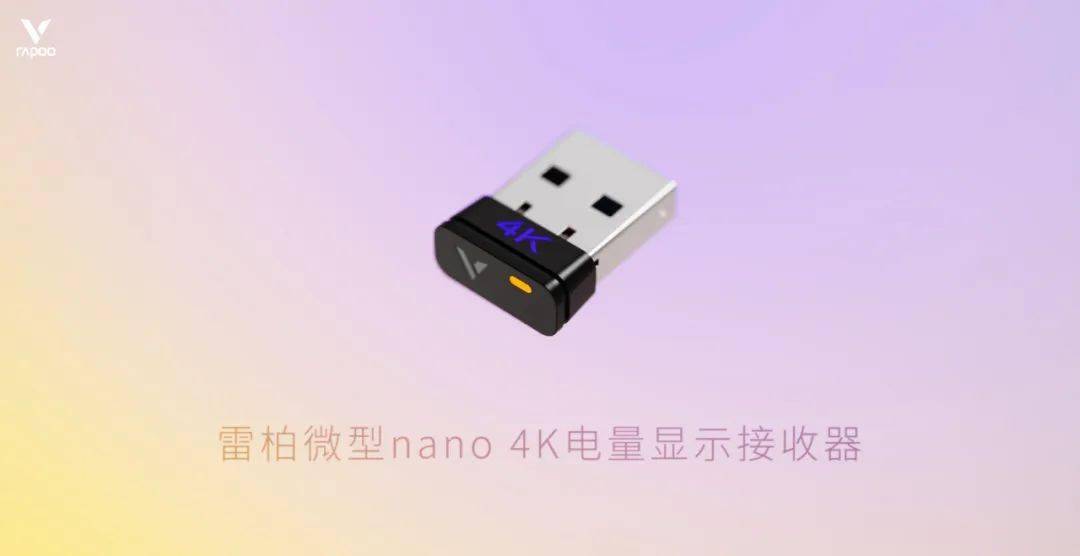 雷柏还将发布微型 nano 4K 电量显示接收器,在更小的 nano 接收器上实现全功能,4000/2000/1000/500/250/125Hz回报率一体式。