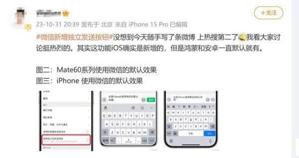 昨日,“微信新增独立发送按钮”冲上热搜。