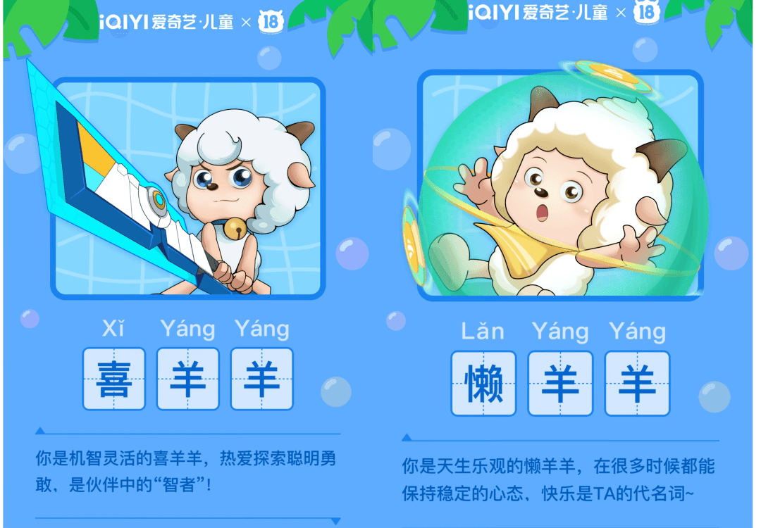 今年是《喜羊羊与灰太狼》IP开播18周年。18年来,灰太狼永远都没有吃到羊,但他们的故事仍在继续。就在18周年庆之际,爱奇艺与喜羊羊的联动共同点亮了“羊羊宇宙”。首先,孩子们在线上通过测一测了解自己是哪只羊,家长则通过测试更了解孩子的个性与喜好。截止目前,“测一测”互动游戏参与人次已经超过9万,而活动分享人次近6000。