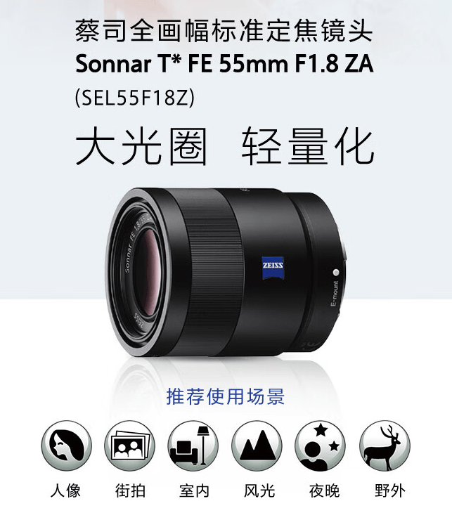 原标题:索尼 Sonnar T* FE 55mm F1.8 ZA 全画幅镜头到手价 3499 元
