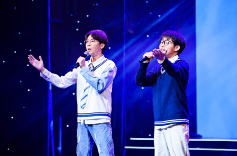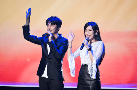 中国台湾选手张家豪(左)、林佳臻(右)深情献唱《我在雄江,遇见你》