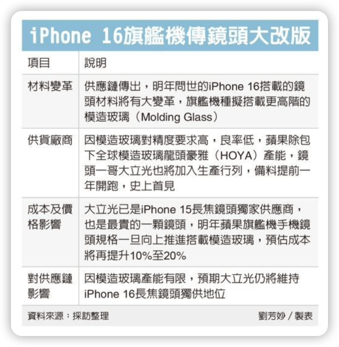报道称,苹果计划在 iPhone 16 系列中使用更加先进的玻璃镜头模组,从而实现更轻薄的后摄模组设计。