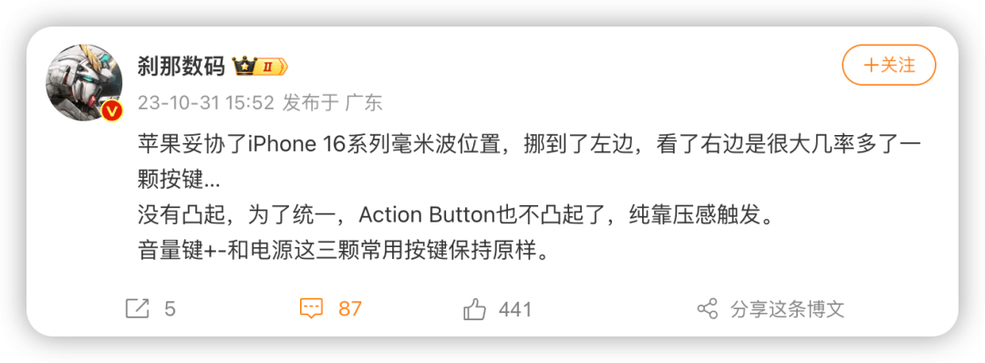 为了这一设计,美版 iPhone 16 系列原本位于右侧的毫米波天线将移至机身左侧。