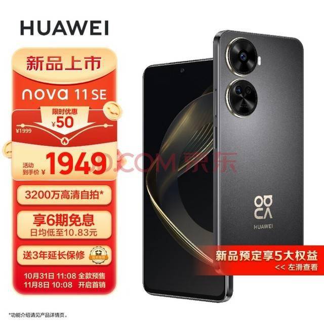 华为于今天上午正式发布了新款智能手机华为nova11 SE。这款手机搭载了骁龙680 4G处理器,并配备了1亿像素的主摄像头,售价从1999元起。