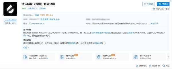 天眼查APP显示,诗云科技的法定代表人为徐卓,目前公司已完成两轮数百万美元融资。其中2021年3月,诗云科技宣布获得红杉中国种子基金和真格基金的天使轮投资;同年8月30日,诗云科技宣布获得数百万美元Pre-A轮融资,由IDG资本领投、红杉中国种子基金和真格基金跟投。