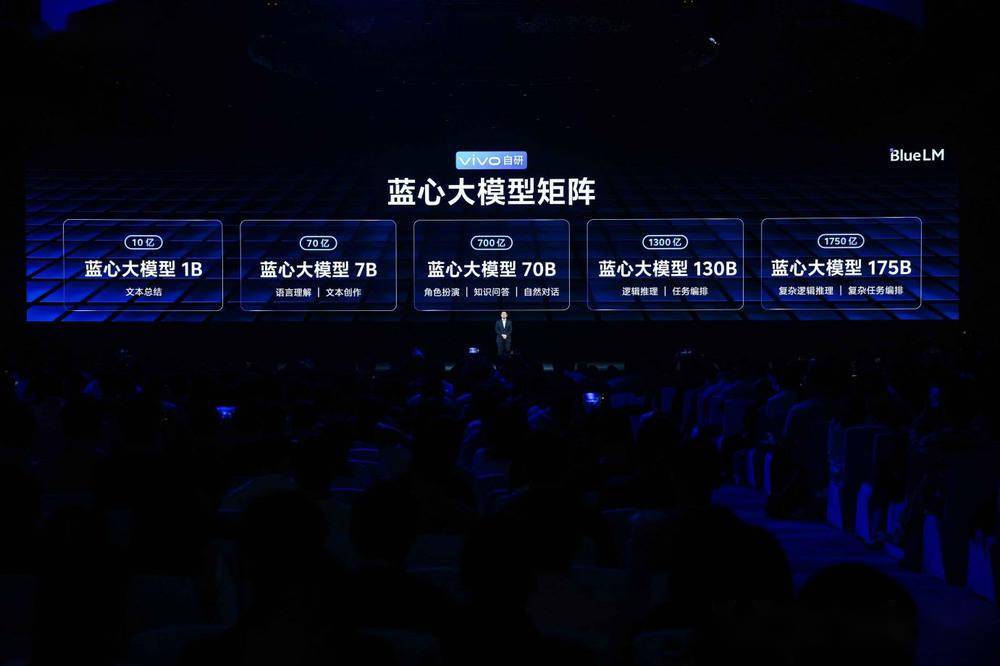 主会场上,vivo副总裁、OS产品副总裁周围发布了“1+2+N”的智能系统体验。其中的1,即vivo自研通用大模型矩阵——蓝心大模型BlueLM;2,即系统全局智能辅助应用“蓝心小V”和以公版APP形式推出的自然语言对话机器人“蓝心千询”;N,即开发者依托vivo业界首家开源的70亿蓝心大模型和对应的微调框架以及大模型开发套件BlueKit打造的高效、低成本专属大模型。1+2+N,将为用户和开发者带来行业领先的智能化体验。