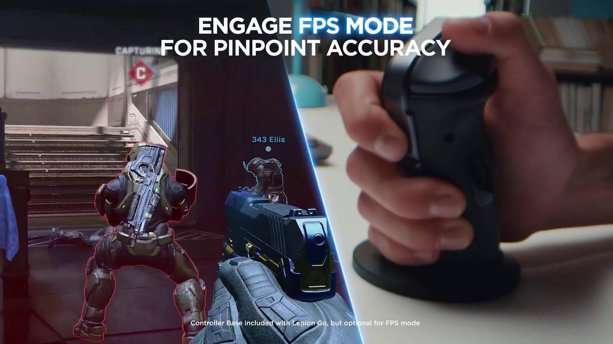 但最让人在意的,还是在 FPS(第一人称射击游戏模式)模式下,玩家可以将主机屏幕拆下,通过后面的支架立住,右侧的手柄可拆卸并放在一个通过磁铁连接的控制器底座,控制器底部的光学眼可在竞争性 FPS 游戏中实现更精准地瞄准和控制,带来鼠标的使用体验。