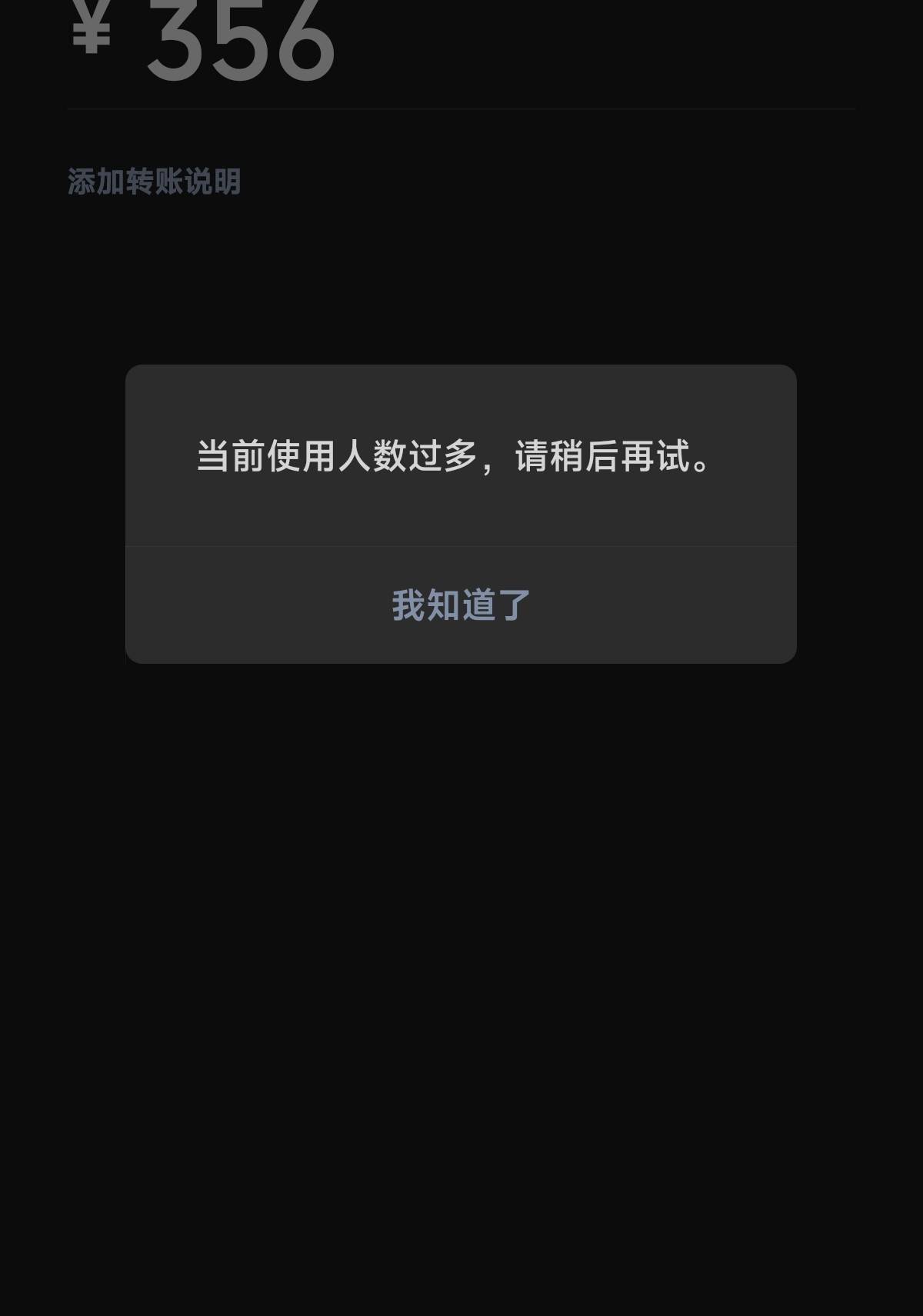 根据IT之家网友反馈,微信支付以及语音通话等部分功能出现异常,例如微信转账时会提醒“当前使用人数过多,请稍后再试”。