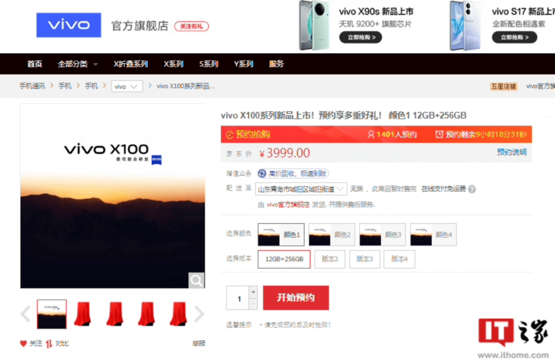 vivo X100 系列手机已经上架京东 vivo 官方旗舰店开启预约,让人意外的是新机的售价已经直接公布 ——3999 元起(12+256GB)。