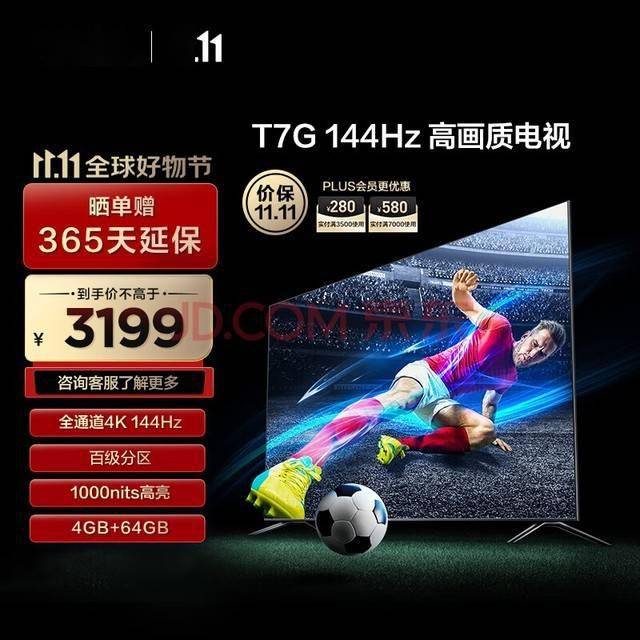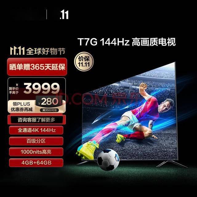TCL推出T7G Max 4K电视,拥有144Hz刷新率和全阵列百级分区控光功能。这款电视的峰值亮度达到1100尼特,动态对比度为1100万:1,并且支持96% DCI-P3色域。TCL宣称这款电视实现了从接口、芯片、屏幕、算法的解决方案,并向下兼容4K120Hz、4K60Hz,向上兼容240Hz。此外,T7G Max还配备了16Bit感控环境光、PWM调光和MEMU运动防抖技术,在视力健康方面表现出色。