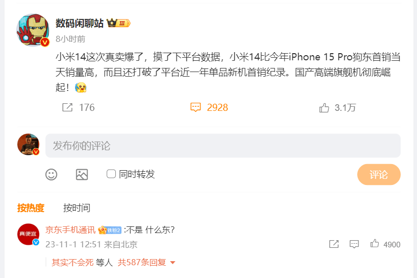 至于国产手机最难超越的苹果,根据爆料大神@数码闲聊站 透露的信息,此次小米14在电商平台比苹果iPhone 15 Pro卖的还多。大家都知道,苹果iPhone 15 Pro在近期的双十一期间官方降价了,这意味着降价促销的iPhone 15 Pro还没打过全价的小米14,国产手机这次确实崛起了。