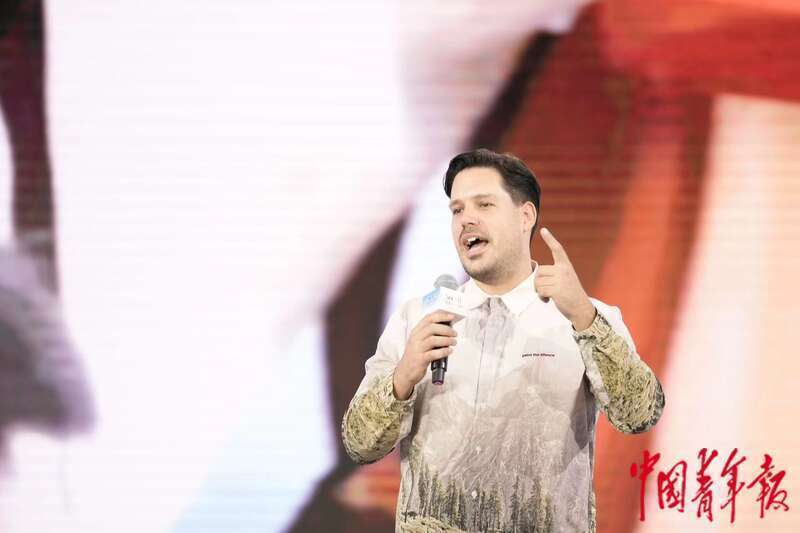 10月31日,北京首钢园,2023年世界青年发展论坛青年数字发展主题论坛闪电发言环节,黑山“漂移”创业培训负责人乌罗斯·布拉托维克介绍了团队项目在帮助青年就业创业方面作出的贡献。中青报·中青网记者 李隽辉/摄