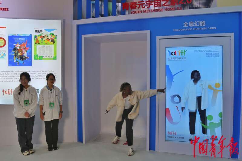 10月31日,北京首钢园,2023年世界青年发展论坛青年数字发展主题论坛外,外国参会者体验中国青年报元宇宙之家2.0现场展示。中青报·中青网记者 赵迪/摄