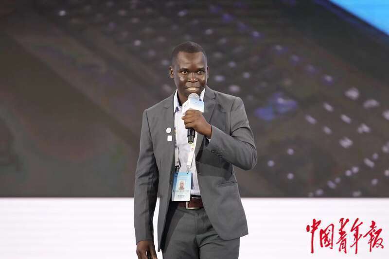 10月31日,北京首钢园,2023年世界青年发展论坛青年数字发展主题论坛闪电发言环节,津巴布韦前线研究所讲师麦卡利斯特·塔瓦纳·尼安多罗分享了团队为互满爱人与人国际运动联合会培养青年人才的经历。中青报·中青网记者 李隽辉/摄