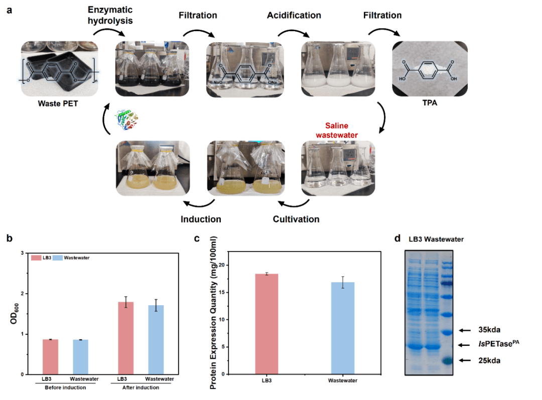 图丨在含盐废水基培养基中培养需钠弧菌并表达 PET 水解酶(来源:Bioresource Technology)