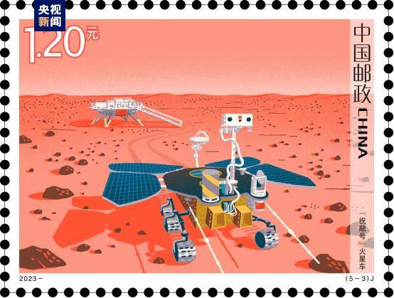 第三枚表现了“祝融号”火星车。“祝融号”火星车在世界上首次采用主动悬架移动系统,可以很好适应火星表面未知、复杂的地形环境,还具备良好的自主感知和自主管理能力。其搭载的六种科学载荷,获取了大量科学数据和成果,深化了人们对火星的认识。