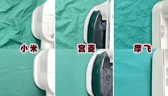 摩飞、小米挂烫机针对褶皱不堪的布料,大部分都能被熨平,但是能明显看到少量的折痕印记,且喷射出来的蒸汽量不足,均匀性也不是很好,建议优化改进。