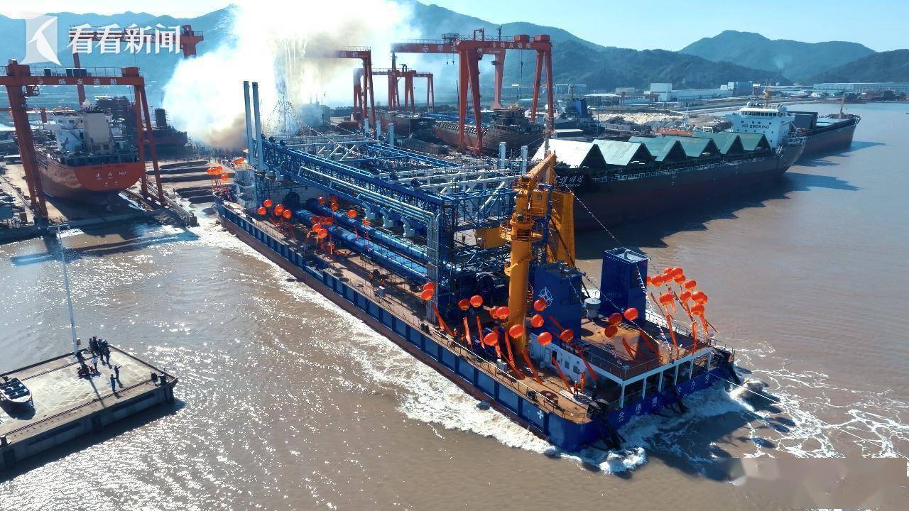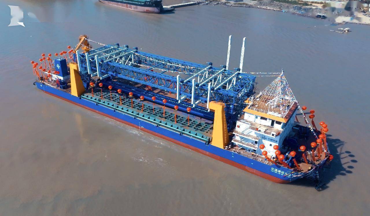 11月1日,由中交上海航道局完全自主研发、投资建造的多功能智能环保铺排船“交通建设九号”在浙江台州举行下水仪式。