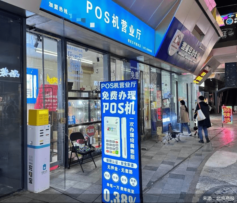 这是王林(化名)第一次尝试开店,与街区其他店铺不一样的是,他的店铺既非餐饮,也不零售,而是免费赠送,向来往个人消费者推销POS机的同时,他还要赠送POS机之外附带的礼品。