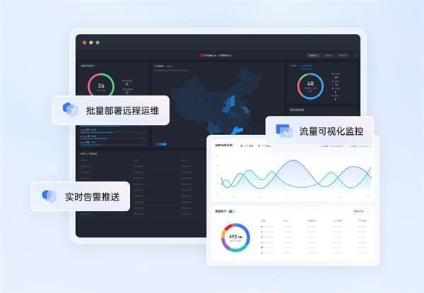 优势3:蒲公英全面采用云端管理平台,除了提供可视化大屏,组网链路、流量状态实时了解,以及全面的审计日志,还全面支持云端运维和云端部署,便于企业快速部署或是拓展新点位。