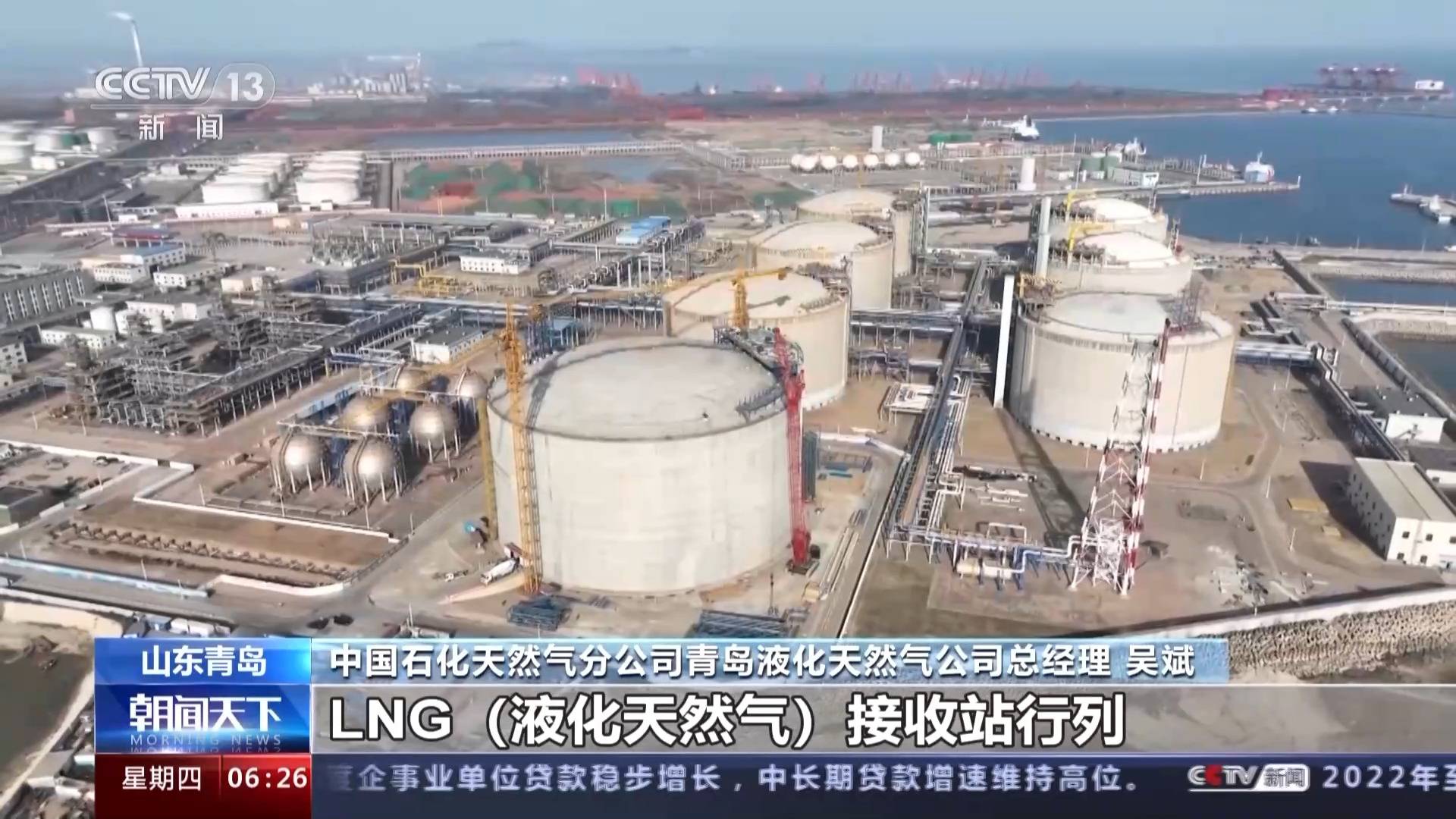 中国石化天然气分公司青岛液化天然气公司总经理 吴斌:建设过程中,我们与项目团队共同研发了27万立方米全容式LNG(液化天然气)储罐成套技术,同时我们还加大国产化设备应用,将储罐国产化水平提升至95%,是当前国产化程度最高的液化天然气储罐。