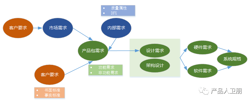 其实,如果从整个需求的生命周期来看,需求会有多种状态之间的转换。如下图所示:最初从客户的要求,一步步转化为设计上的内部需求,在开发端实现落地。