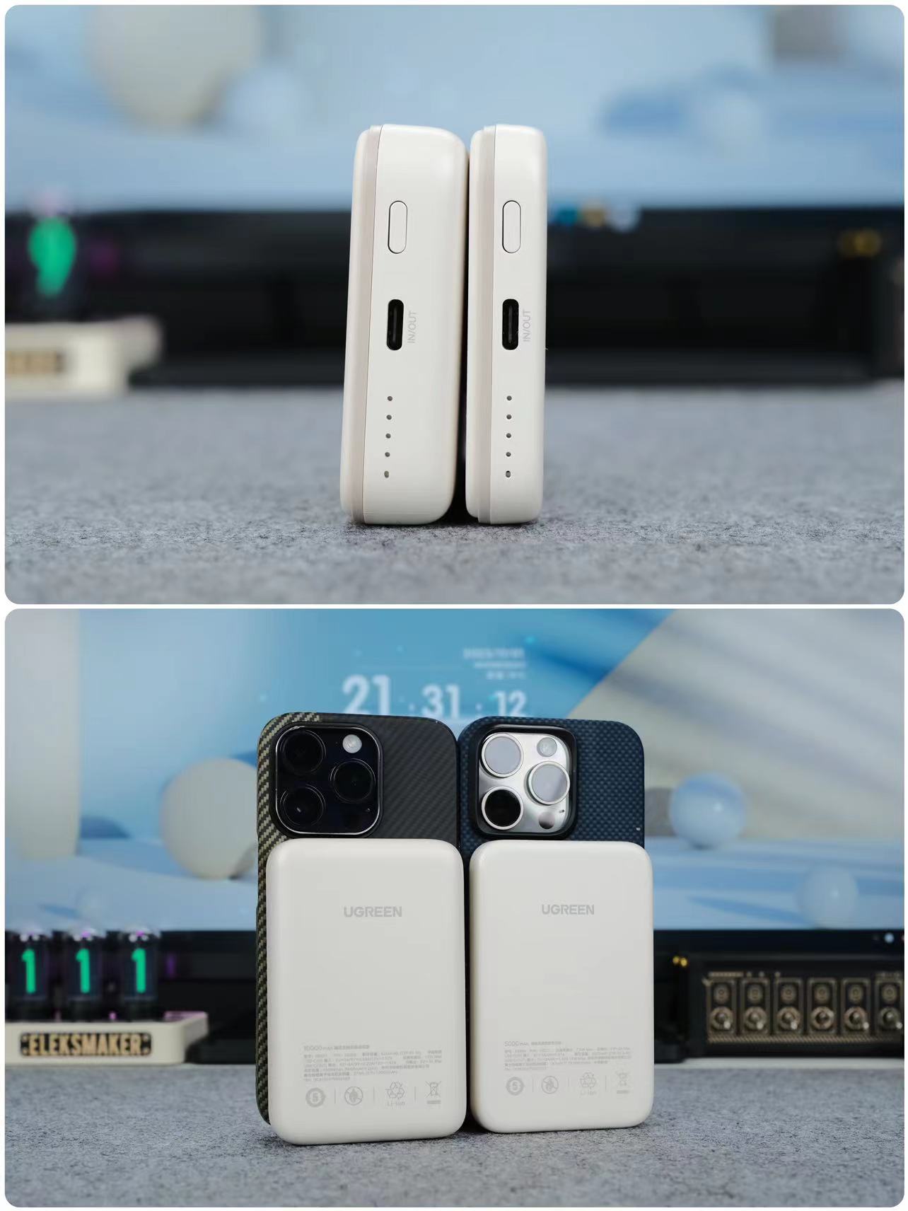 🔺绿联这款磁吸充电宝颜值我是很心水的,米黄色外观,看着暖暖的,外壳采用亲肤的硅胶包裹,整个握持手感非常不错,而且还防滑防沾染指纹,搭配苹果手机使用颜值一次拉满。老王我的这两个充电宝一个是10000mAh的一个是5000mAh的,长度基本是一致的,刚好不会挡住苹果的摄像头,厚度会有一些区别,一个19mm一个13mm厚,实际使用的时候会根据出行时间长短来选择带哪个出门。