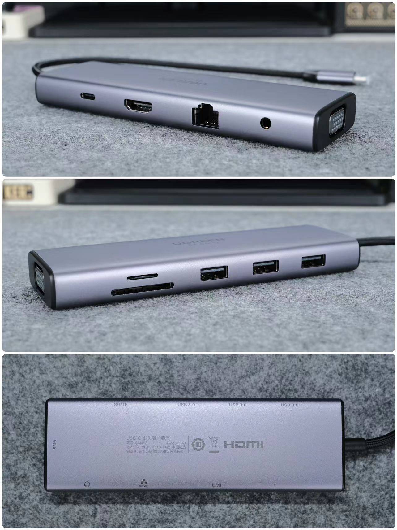 🔺简约大气的太空灰铝合金外壳,集成了绿联数码的高端品质,小巧便携的设计让我们收纳在任何的包中都不会占用很多空间。只要你有C口,就能正常连接它,让它给你的设备增加10个多功能接口,让工作办公省心省力。