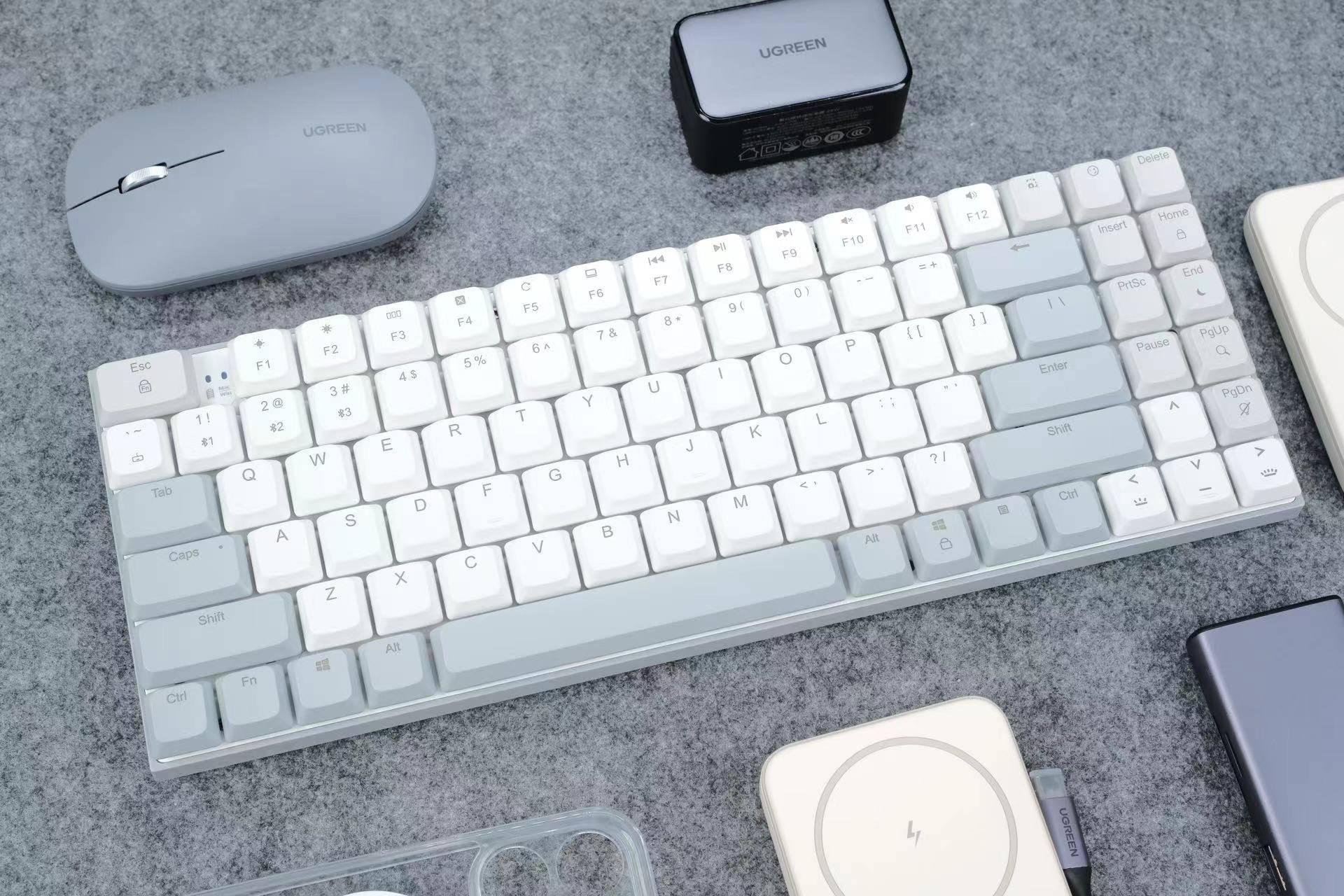 🔺老王我又入手键盘了,这款是准备外出携带使用的,来自绿联的KU102 无线蓝牙矮轴机械键盘。我选了远山白这个颜色,整体更淡雅,加上89键的紧凑设计,整个尺寸方面完全可以装进任何的随身包中,不到1斤的重量,完全就是为差旅设计的。