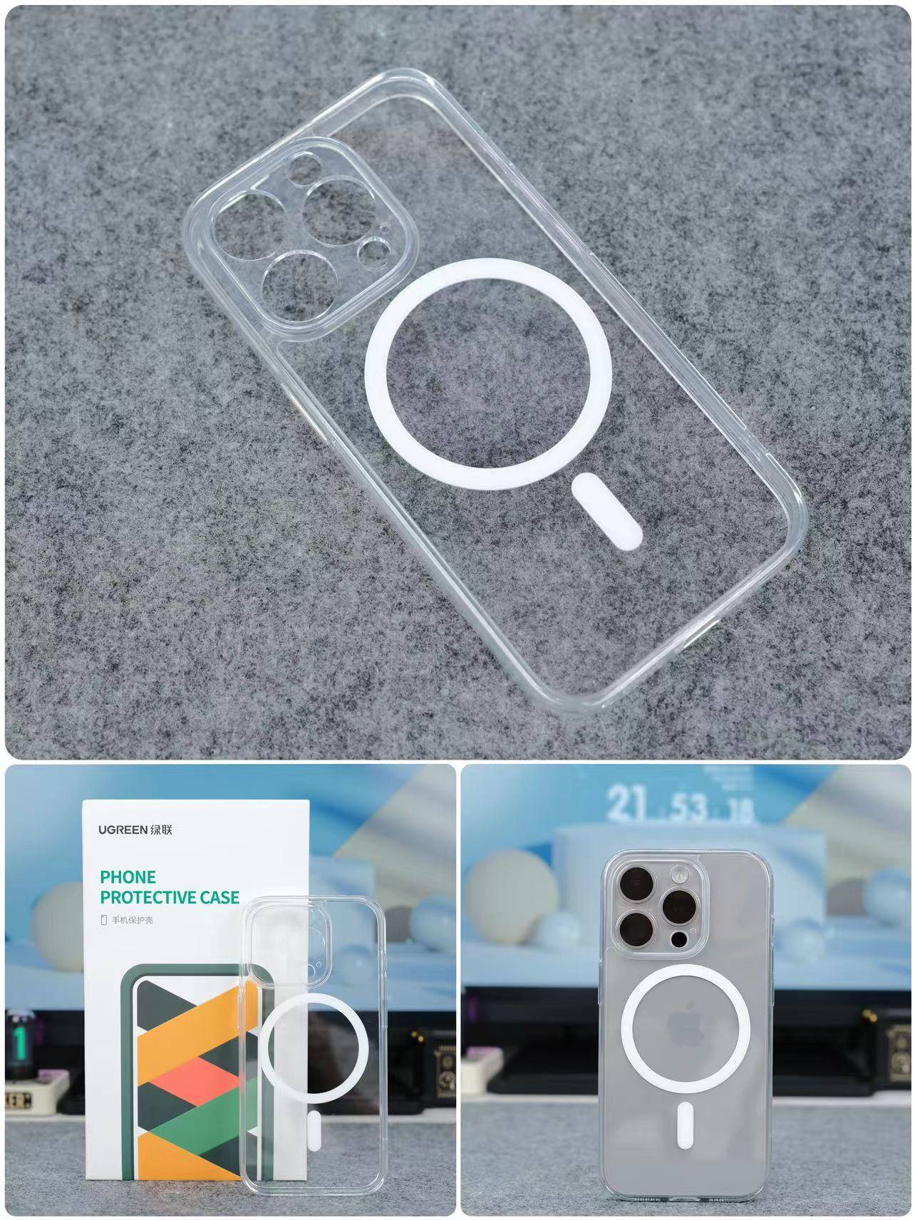 🔺清水壳最大的特点就是透亮,绿联这款使用了TPU软边包裹,不仅不容易划伤手机,而且四角增加微气囊设计能在手机跌落时提供SGS军工防摔保护。微磨砂背板抗油抗指纹,用久了也非常干净。值得一提的是,这款绿联手机壳内置了38颗超薄N52磁铁,可以准确定位手机磁吸区域,不管是磁吸充电宝还是其他磁吸配件,都能牢牢吸附,相当nice。